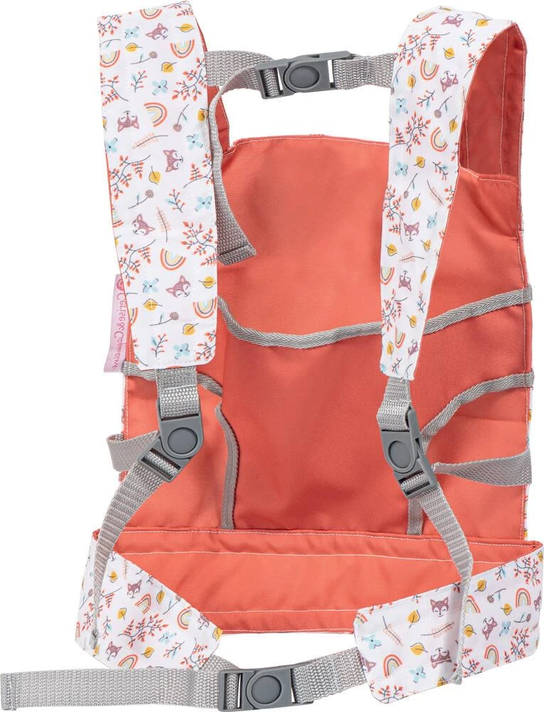 Ce porte-poupée moderne au design élégant convient aux jouets en peluche ou aux poupées jusqu’à 46 cm (jouets en peluche et poupées non fournis). La poupée peut être portée aussi bien devant que derrière. Grâce aux bretelles souples et larges et à la large ceinture ventrale réglable individuellement, le petit chéri de l’enfant peut être porté longtemps et confortablement. Le siège intégré à l’intérieur du porte-poupée offre un soutien supplémentaire pour la poupée. Instructions sur la boîte. Matières : polyester / rembourrage : ouate de fibre de polyester.