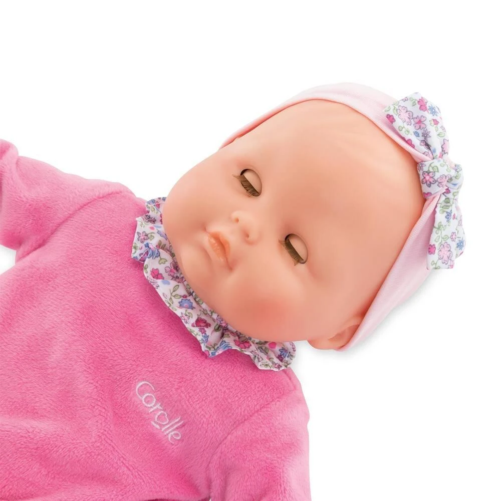 Son visage, ses bras et ses jambes, à la délicate senteur de vanille, sont en vinyle doux au toucher. Son corps est souple pour faciliter ses mouvements. Avec ses yeux dormeurs, elle fait dodo quand on la couche sur le dos. Elle est habillée d’un pyjama.