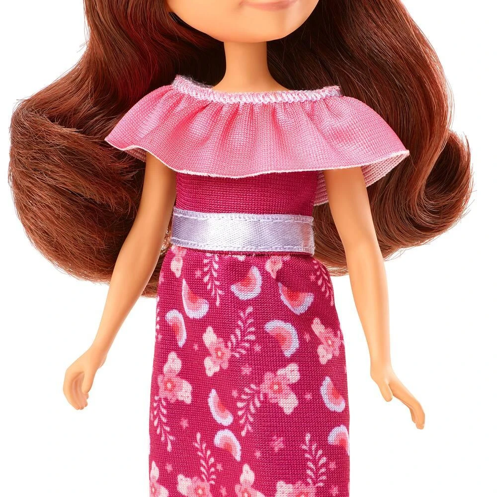 La poupée de 19 cm possède 7 points d’articulation, elle porte une tenue composée d’un top en tissu et d’une paire de bottes inamovibles sur un pantalon moulé et des cheveux à coiffer. Pour développer le jeu d’habillage, une robe supplémentaire, un sac avec une friandise ou un accessoire pour le cheval (non inclus) enrichissent le jeu avec la poupée.